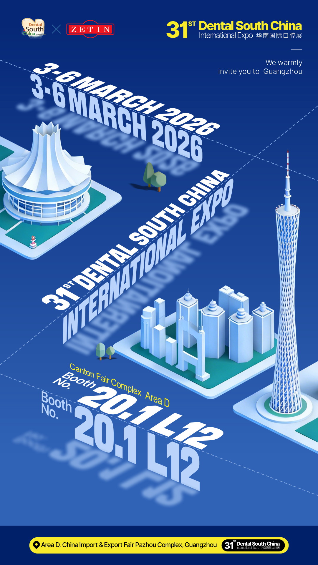 Exhibition Date:3-6 March, 2026.Booth Number: 20.1 L12.Exhibition Center: Area D Canton Fair Complex for short.CenterExhibition Address: Guangzhou, China